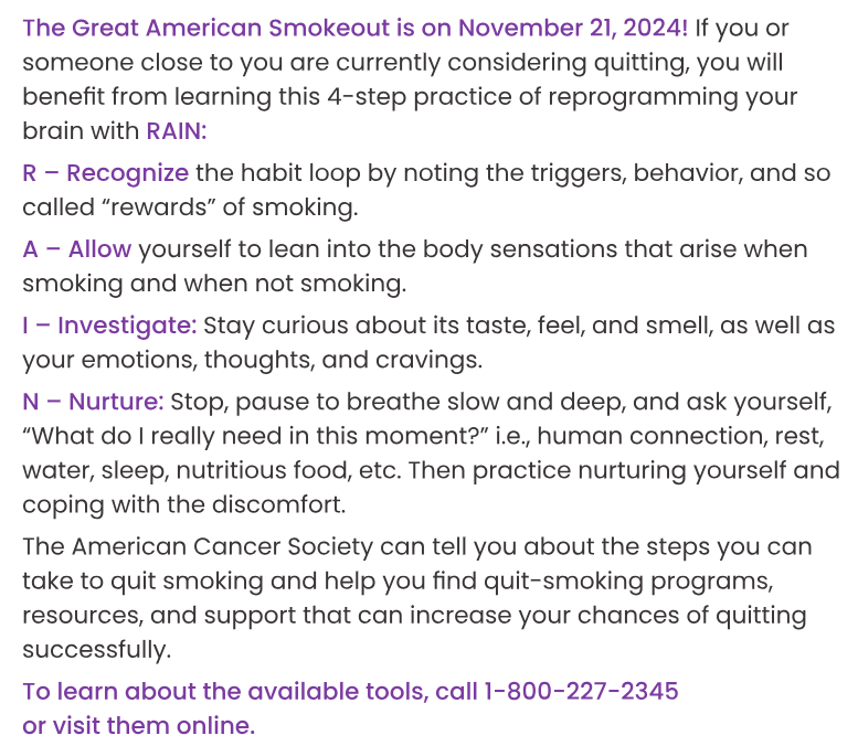 Uncategorized Retrain Your Brain with R.A.I.N. & Quit Tobacco Forever Posted on October 30, 2024 by regalbeagleonline Share this: Click to share on X (Opens in new window) X Click to share on Facebook (Opens in new window) Facebook Like Loading... Related