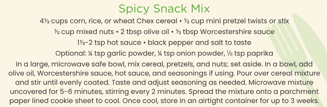 Uncategorized Spicy Snack Mix Posted on October 30, 2024 by regalbeagleonline Share this: Click to share on X (Opens in new window) X Click to share on Facebook (Opens in new window) Facebook Like Loading... Related