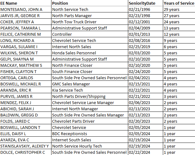 Uncategorized February Work Anniversary’s Posted on February 6 by regalbeagleonline Share this: Click to share on X (Opens in new window) X Click to share on Facebook (Opens in new window) Facebook Like Loading... Related