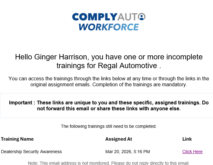 If you are getting these emails, then YES it is ok to click and complete the training course. This is mandatory for ALL employees for keeping our computers and our customers information safe.