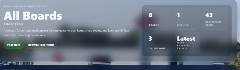 We are excited to announce the launch of the Regal Marketplace, a private digital space created specifically for our employees. Whether you are looking to post items for free, organize a garage sale, share upcoming local events, or post miscellaneous news, this is your new go-to platform.