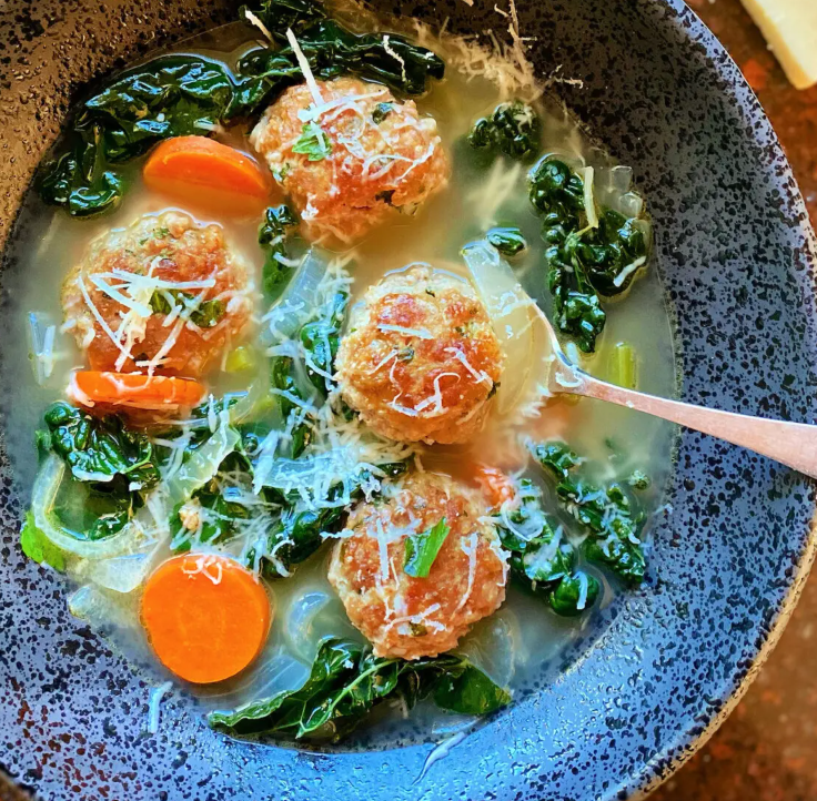 Heat 1 tablespoon oil in a deep skillet or soup pot over medium heat. Add the meatballs in batches, without overcrowding, and flatten slightly. Brown on both sides, turning when they release easily from the pan, about 6 minutes. Transfer to a plate lined with a paper towel. (They will finish cooking in the soup.)