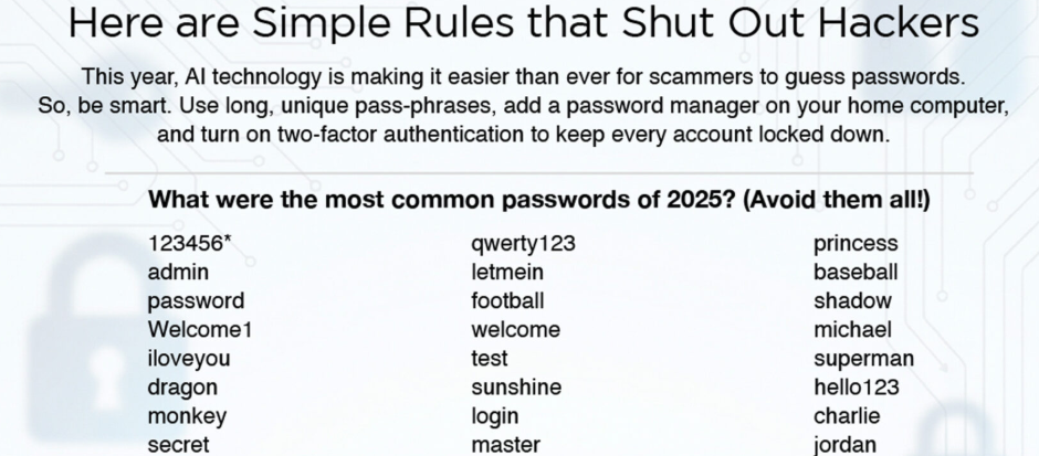 Uncategorized Stronger Passwords for 2026 Posted on 3 Hours Ago by regalbeagleonline Share this: Share on X (Opens in new window) X Share on Facebook (Opens in new window) Facebook Like Loading... Related