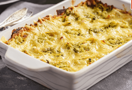 - Mix all ingredients thoroughly and pour into a greased 13×9-inch baking dish.